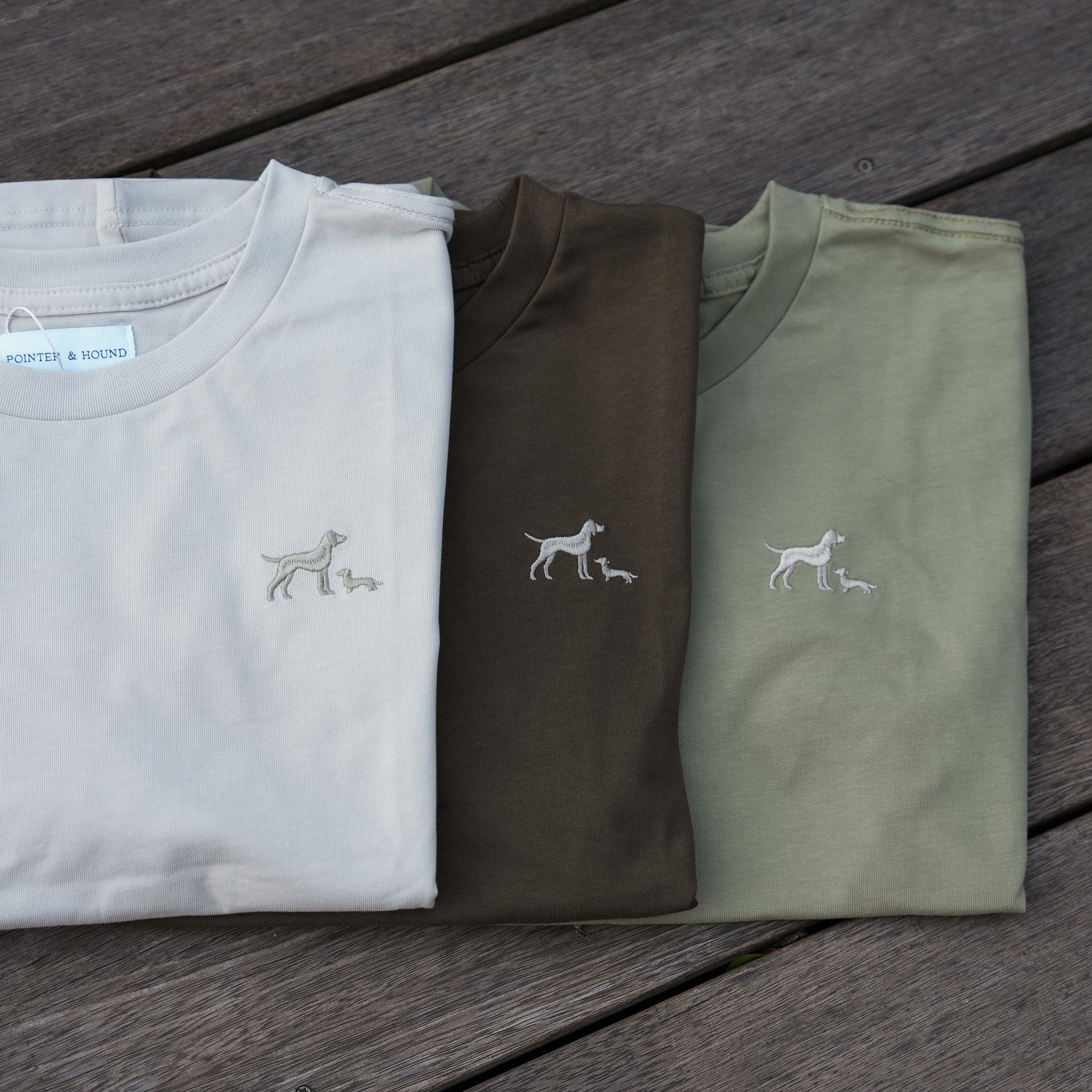 Made from high-quality 100% cotton (230gsm) material that feels comfortable to wear. It’s the kind of elevated basic you reach for without thinking - tidy, stylish, and the perfect everyday way to rep POINTER & HOUND. Finished with a subtle embroidered detail of our POINTER & HOUND dogs on the chest in a complementary tone.